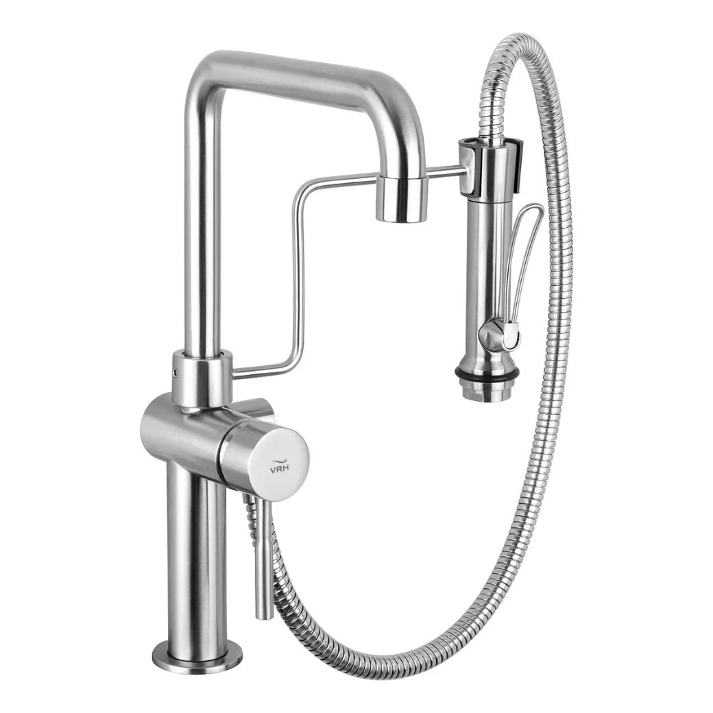 ก๊อกน้ำสำหรับอ่างล้างจาน พร้อมสายฉีด VRH รุ่น MARATHON ผลิตจากวัสดุสเตนเลส 304 ทน แข็งแรง ลดการเกิดสนิม ใช้งานได้ยาวนาน ดีไซน์ทันสมัย ก๊อกสามารถปรับระดับการใช้งานได้ มาพร้อมกับสายฉีดทำความสะอาดจานและอ่างล้างจานโดยเฉพาะ