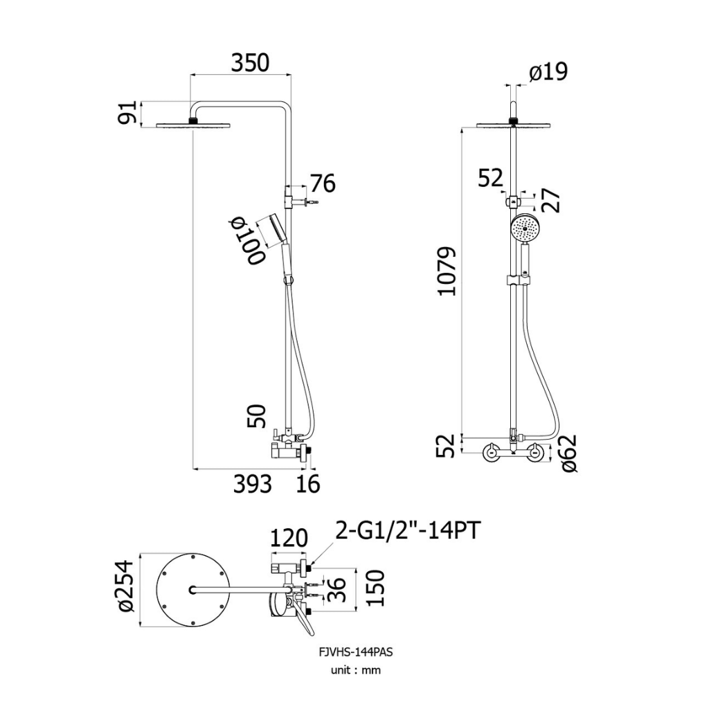 ชุดฝักบัวก้านแข็ง วาล์วคู่ผสม แบบติดผนัง รุ่นTempo พร้อมหัวฝักบัวขนาด10″และฝักบัวมือถือ4″