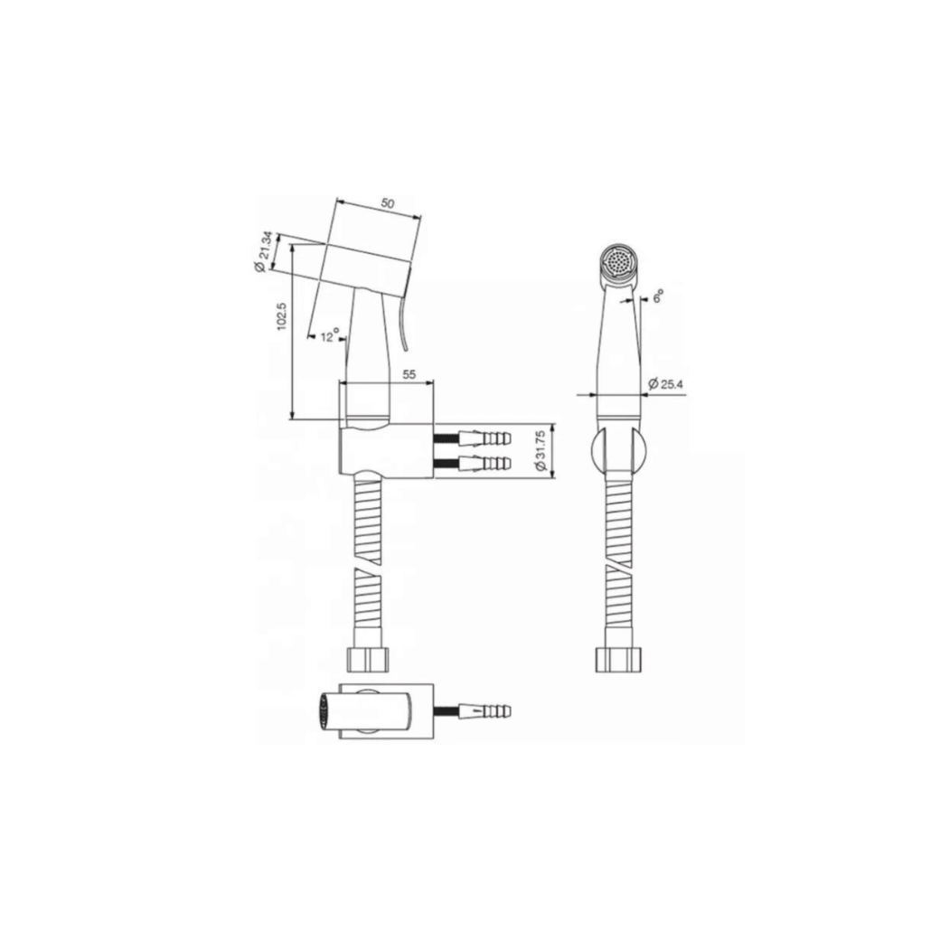 - ชุดหัวฉีดชำระทรงตรงพร้อมสาย 1.2 ม. + ขายึด