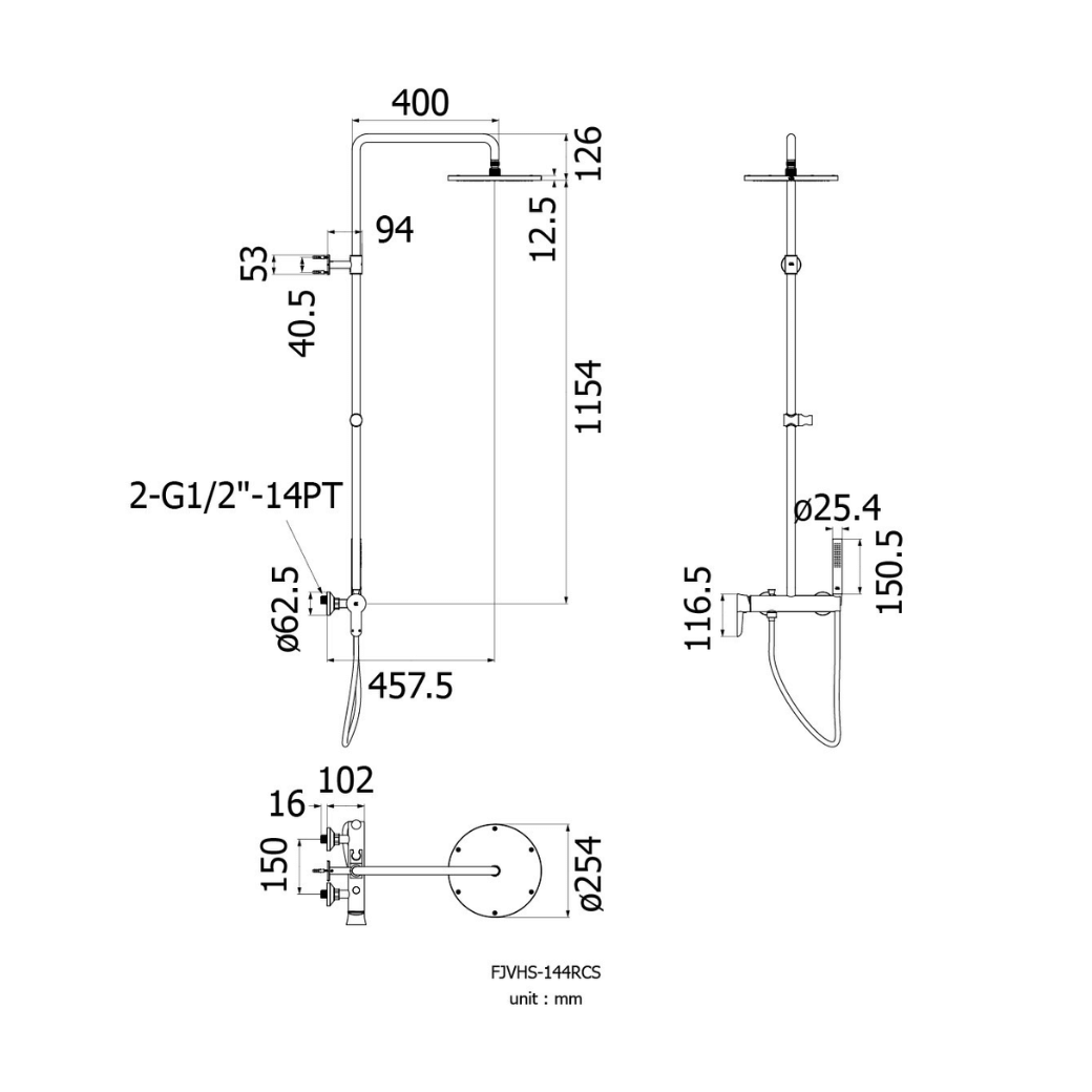 ฝักบัวก้านแข็งเดี่ยวผสมหัว10″ แบบติดผนังพร้อมฝักบัวมือถือ รุ่น VILLA
